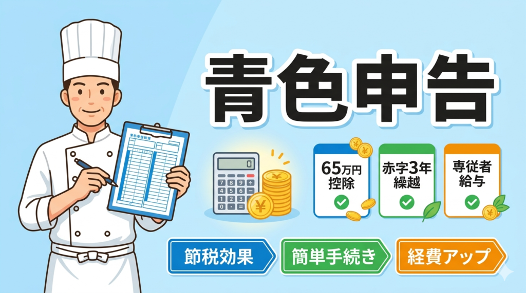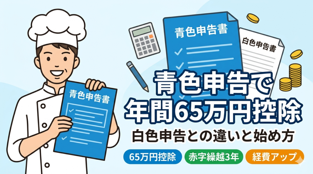 飲食店の青色申告完全ガイド|30年経営者が65万円控除で年19万円節税した実例【2026年】