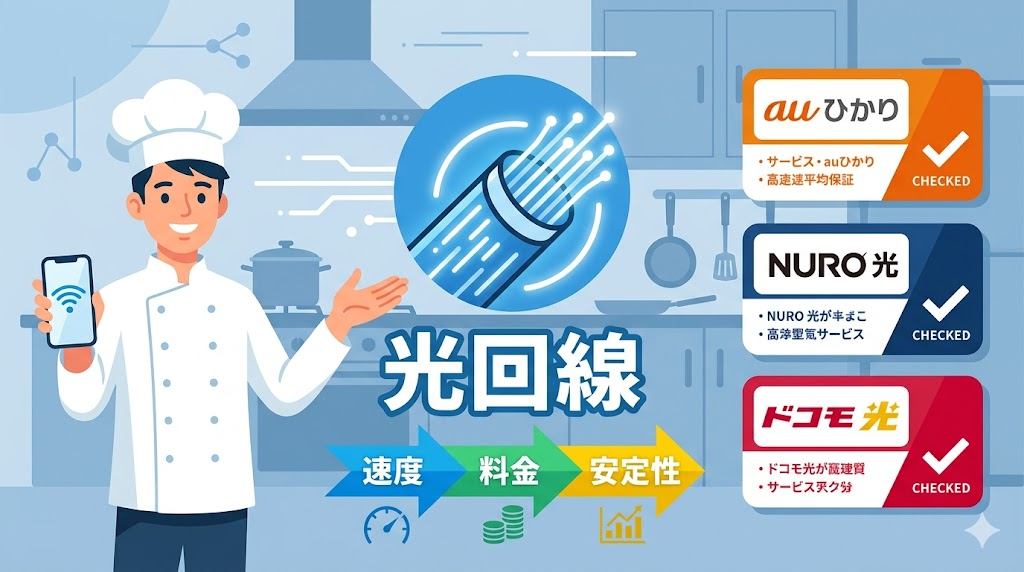 飲食店の光回線おすすめ比較【2026年】au光・NURO光・ドコモ光を30年経営者が本音解説