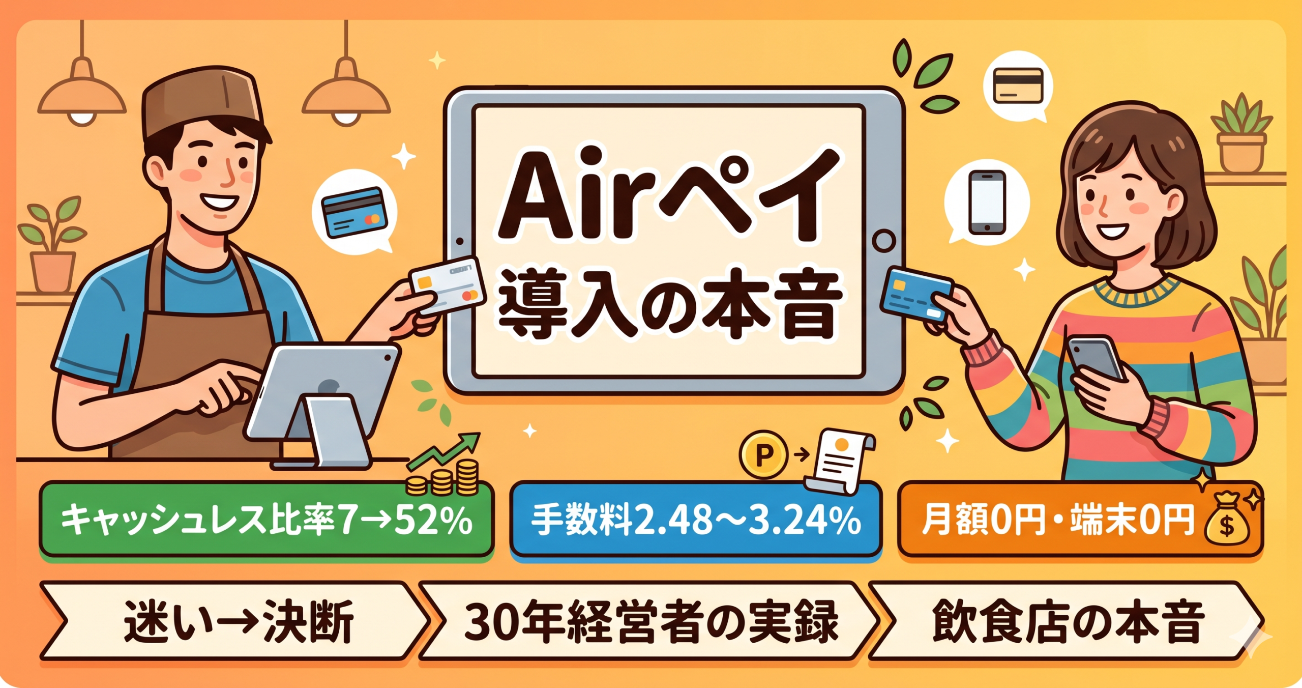 筆者は30年、実店舗を経営してきた現役の飲食店オーナーです。Airペイ導入後、店のキャッシュレス比率は7%→52%まで上昇。導入時の試行錯誤も含めて正直に書きます。