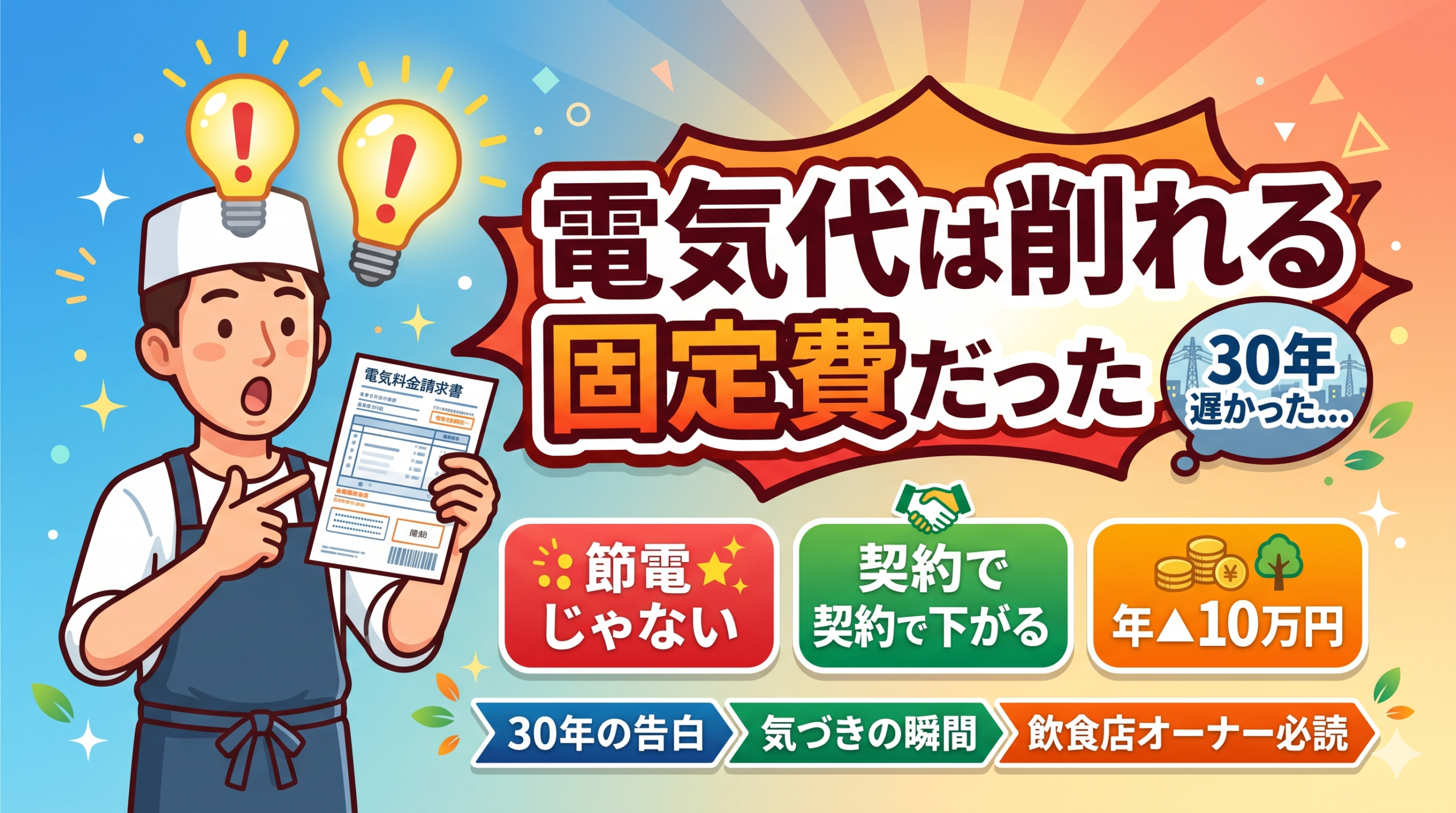 この記事は、電気代を「削れない光熱費」だと思い込んでいた私が、「削れる固定費」だと気づくまでの経緯を書いた告白記事です。同じ勘違いをしている飲食店オーナーさんに、一人でも多く気づいてほしくて書きました。