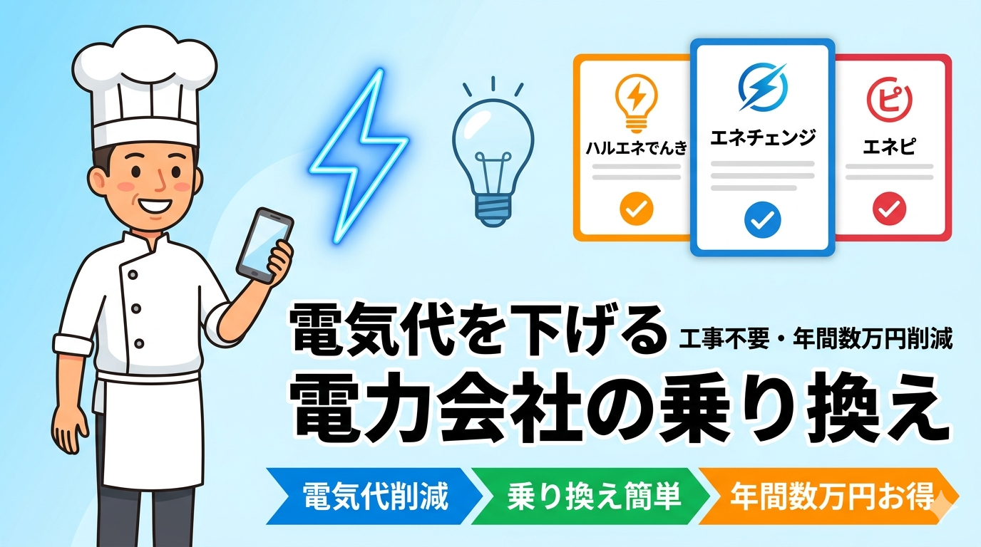 飲食店の電力会社乗換手順|30年経営者が工事なし・1枚書類で年10万円削減した実例【2026年】