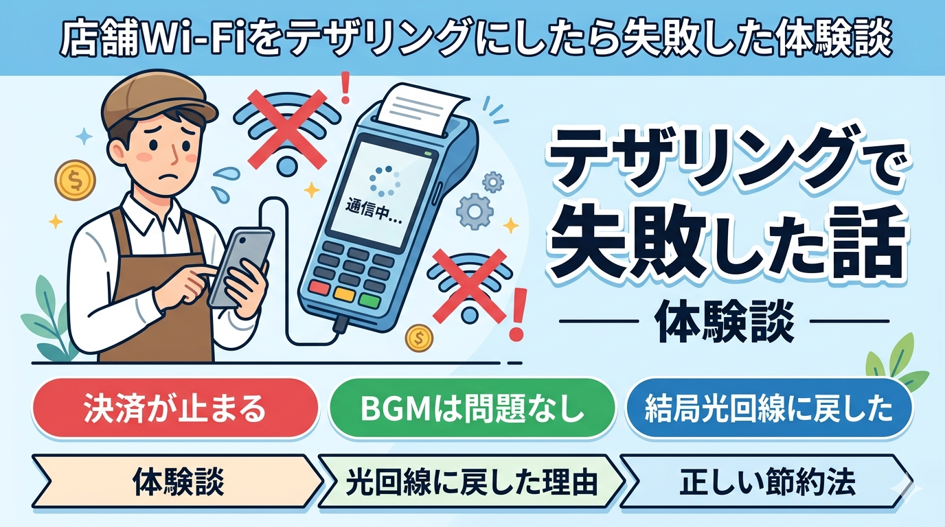 結論から言うと、キャッシュレス決済を使う店舗にテザリングは向いていません。結局、光回線に戻しました。この記事では、失敗の経緯と「なぜ光回線に戻す判断をしたか」を正直にお伝えします。